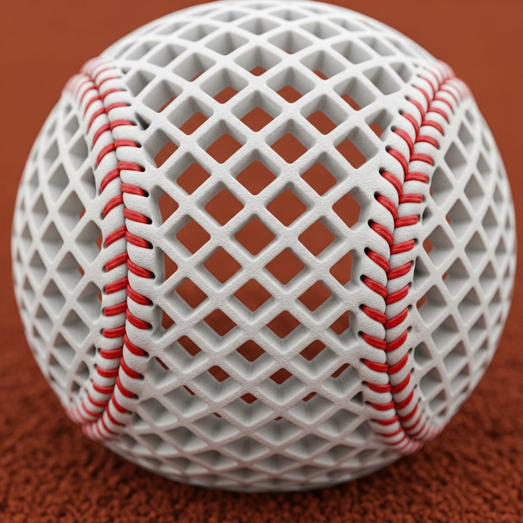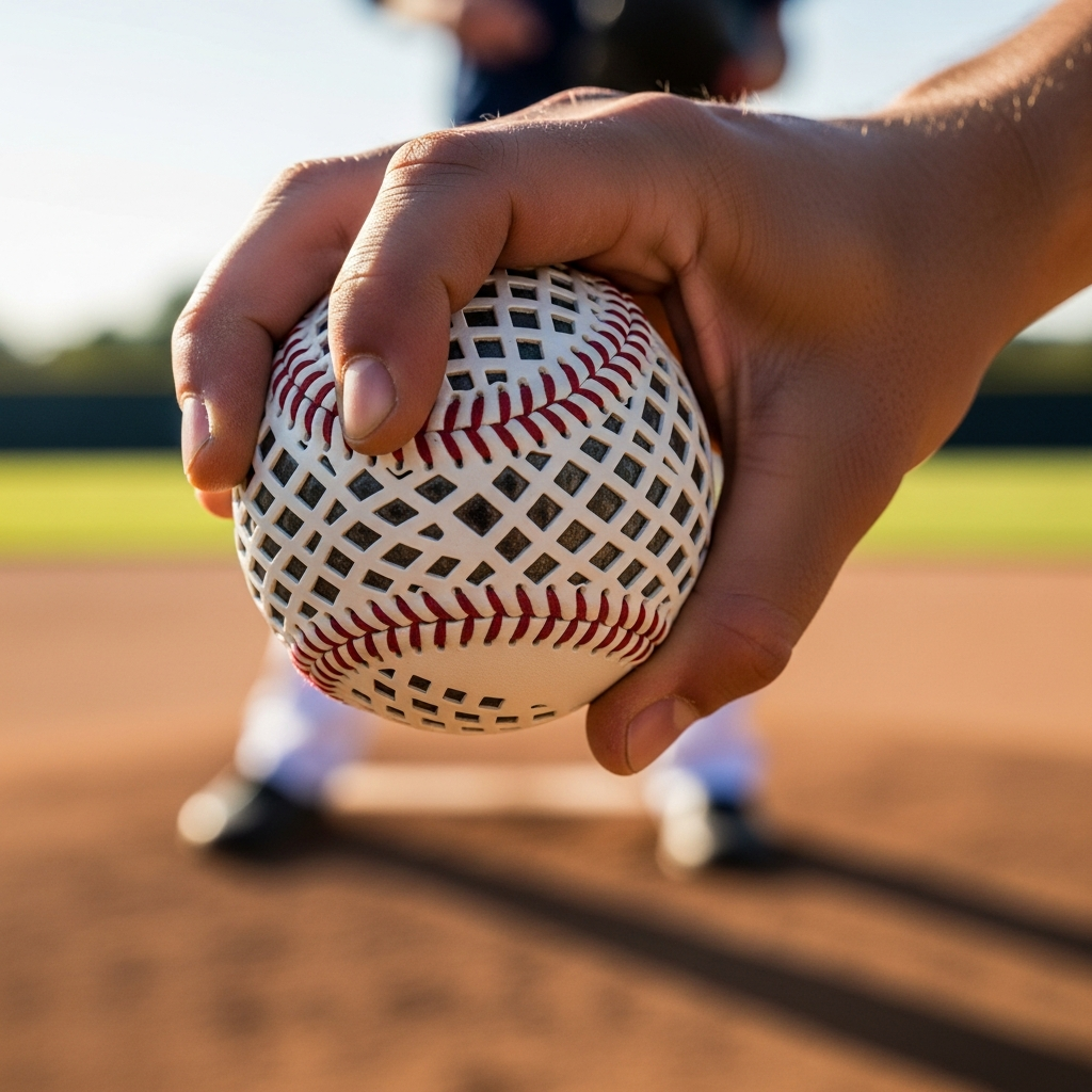 כדור בייסבול עם עיצוב רשת מתקדם ותפרים מעוצבים. מושלם לאימון זריקות ומשחק. עמיד ולא מתבלה.